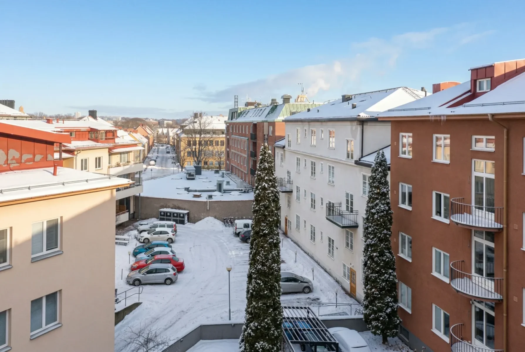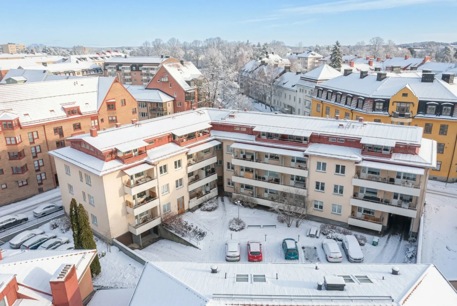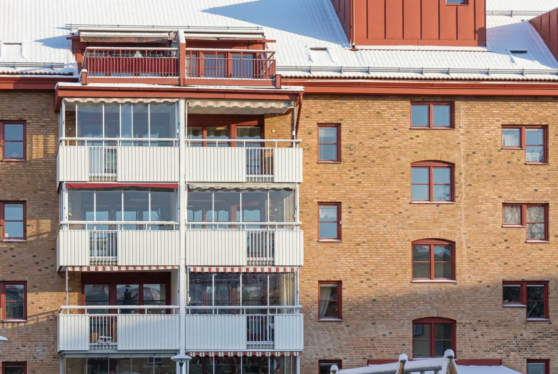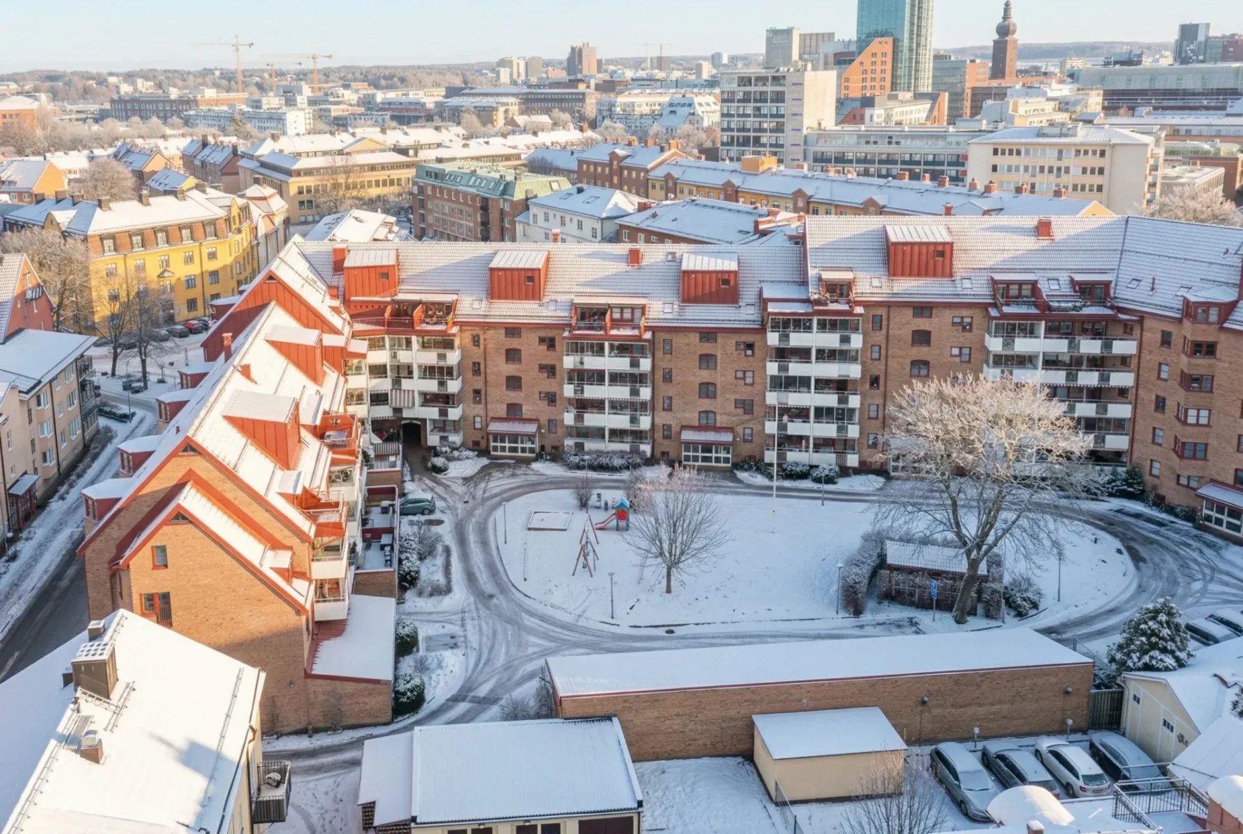 Balkonger finns till nästan alla lägenheternaGård